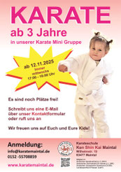 neue Gruppe "Karate Minis" für Kinder zwischen 3 und 6 Jahren, jeden Mittwoch von 17:00 bis 18:00 Uhr